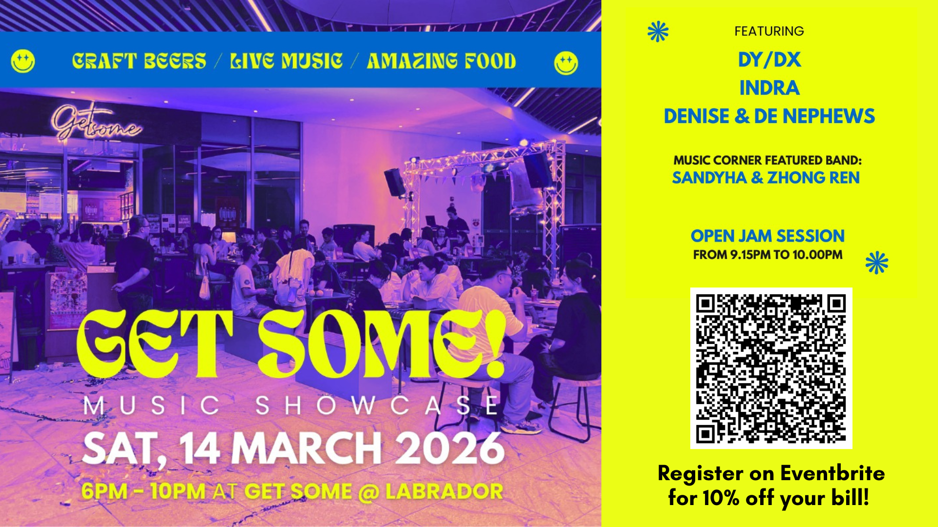 Getsome at Labrador is conveniently located just 2 mins walk away from the Labrador Park MRT. This pet-friendly craft beer bar offers a perfect blend of great food, welcoming ambience, and scenic greenery views. Enjoy our Power Rice Bowls, juicy burgers, classic Fish & Chips, and sizzling steaks, with pinsa, pasta, and herbal soups. Our relaxed setting is ideal for casual gatherings, while our team also caters to corporate events, private celebrations, and on-site catering with mobile beer booths.